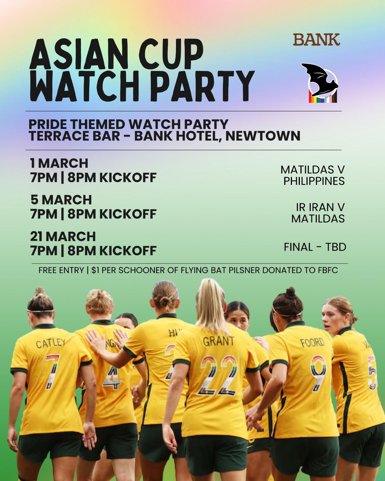 Cheer on the Tillies with us this March as the Australia women's national soccer team take on Asia’s best in the AFC Women's Asian Cup. We’re teaming up with Flying Bats Football Club to bring you a series of Pride-themed watch parties packed with atmosphere, community spirit, and big-screen football.